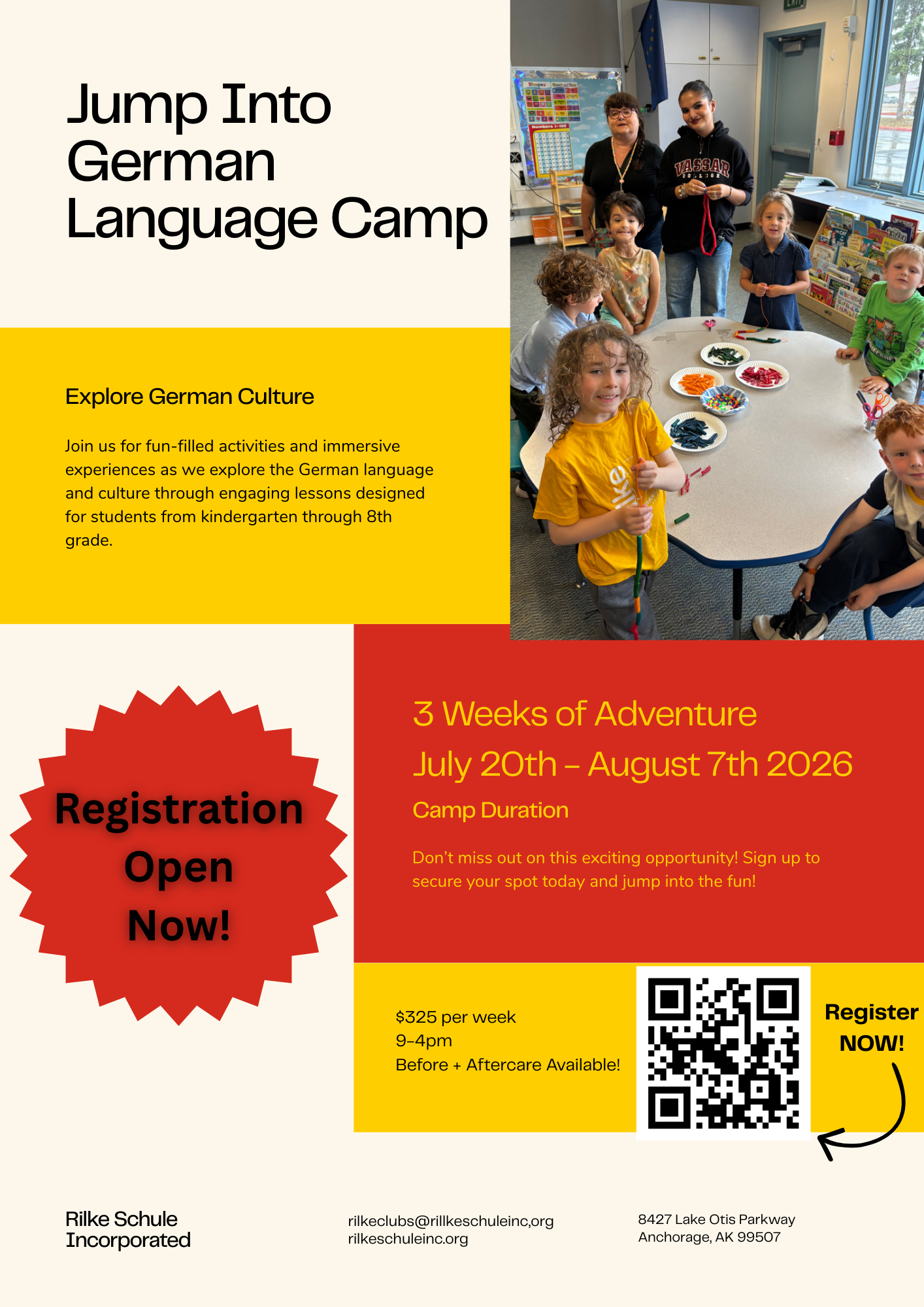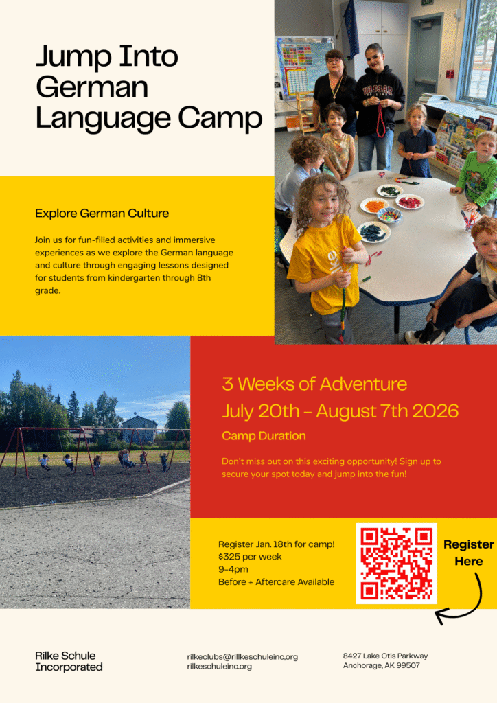 Rilke Schule Inc. (RSI) is a 501(c)3 non-profit that supports the Rilke Schule German Immersion School. Rilke Schule is a Kindergarten through 8th grade, public charter school within the Anchorage School District. It is Alaska’s only German immersion program.
